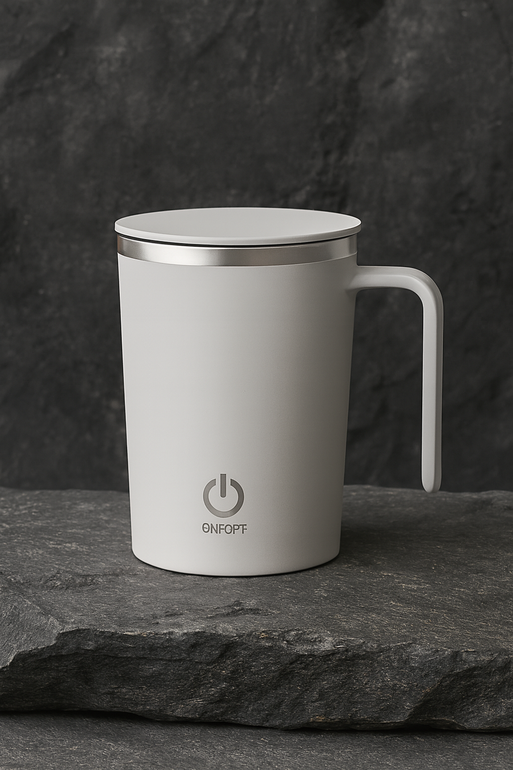 Automatic self-stirring mug designed for coffee, milk, hot cocoa, and other everyday beverages